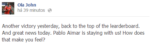 PS: a confirmar-se, a manutenção do Aimar é a melhor notícia que podíamos ter. Porque será certamente importante para a conquista do título, mas também porque Aimar merece sair do Benfica campeão e ovacionado de pé por 65 mil pessoas. Ou centenas de milhar de pessoas nas ruas de Lisboa.